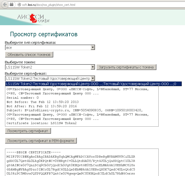токенов/смарт-карт в продуктах ООО «ЛИССИ-Софт».