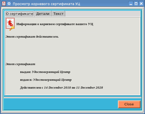 Нажав кнопку «Просмотр CA УЦ», мы убеждаемся в том, что именно это именно наш корневой сертификат.